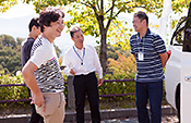 前回と同じく"ユルい"雰囲気を大切にした今回のリスニングキャンプ2では、ひとつ新しい企画をスタートさせました。それは「ソニックアンバサダーによる愛車試聴会」。ソニックデザインに対して人一倍アツい思いをお持ちの個人オーナーの方に、ソニックデザインの音の使節(アンバサダー)になっていただき、ご自身の愛車の試聴プレゼンテーションをしていただこうというものです。プレゼンテーションは販売店やメーカーのデモカーでスタッフがするように、アンバサダーが助手席または後席に座って、来場者のみなさんは1組ずつ運転席(1組が2名の場合は前席左右)に座って音を聴いてもらうというスタイルで行っていただきました。アンバサダーの人数(台数)は午前・午後各5台ずつの計10台で、各自の持ち時間は2時間。試聴がスムーズに進むよう選んだ曲をを適当な長さに編集したり、システム説明用のパネルを作成するなど、自慢のサウンドをしっかりアピールできるよう思い思いの配慮をされていたようです。