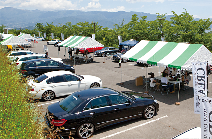 そして迎えた当日の午前10時、個人参加のお客様のクルマが会場に続々と入り始めました。場内は奥がショップデモカーのゾーン、中央付近がソニックデザインのデモカーとサウンドクリニックのゾーン、そして出入口に近い手前側が試聴デモ可能な個人参加車両のゾーンになっていて、試聴デモを行わない個人参加車両は隣接する一般駐車場へと案内されます。初回ということもあって、試聴デモ可能ゾーンに乗り入れることを躊躇されるソニックデザインユーザーの方も多かったようですが、ユルい雰囲気は会場の中も外もたいして変わりません。今回ちょっと躊躇しちゃったみなさん、ぜひ次回は「聴かせる側」も楽しんでくださいね。